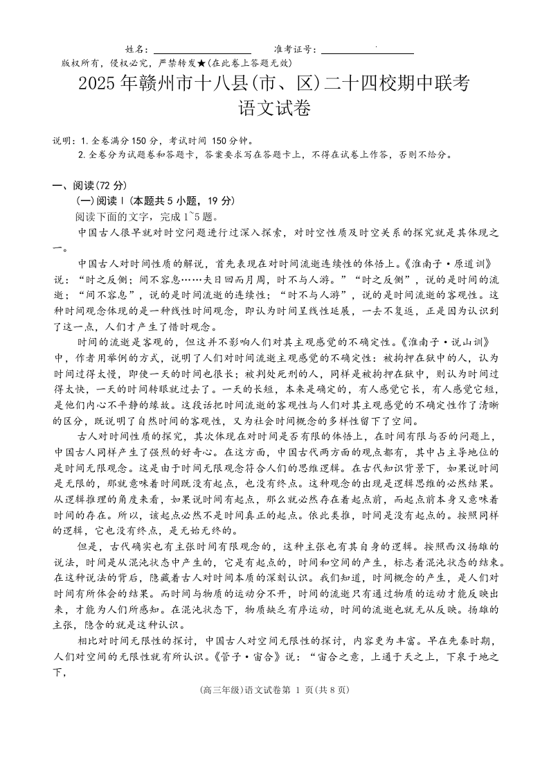 江西省2025年赣州市十八县(市、区)二十四校高三年级期中联考 语文.docx
