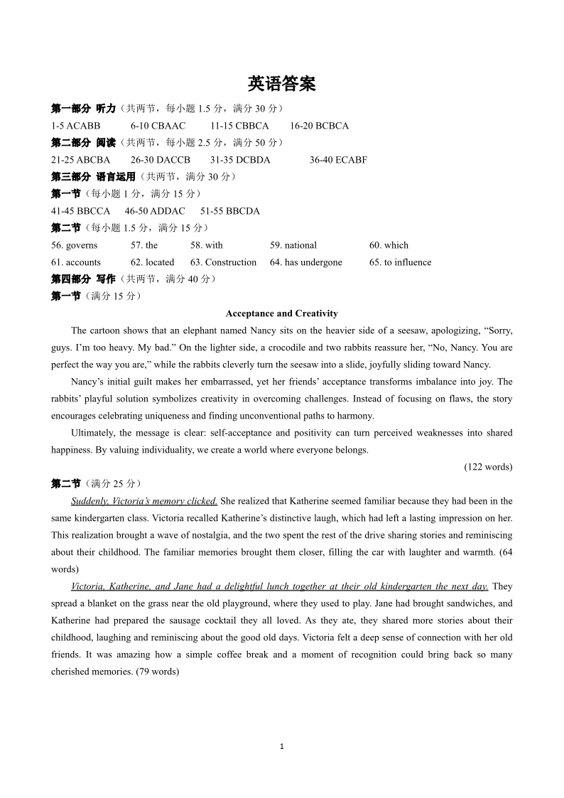 江西省2025年赣州市十八县(市、区)二十四校高三年级期中联考 英语答案.pdf