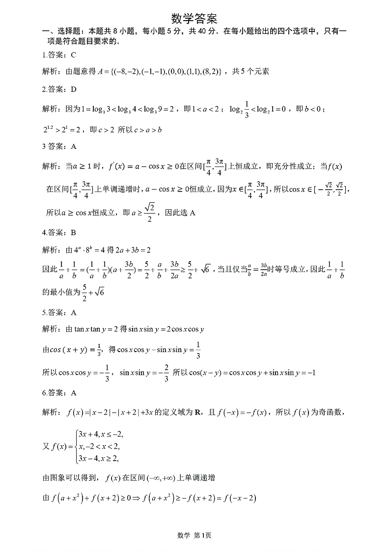 江西省2025年赣州市十八县(市、区)二十四校高三年级期中联考 数学答案.pdf