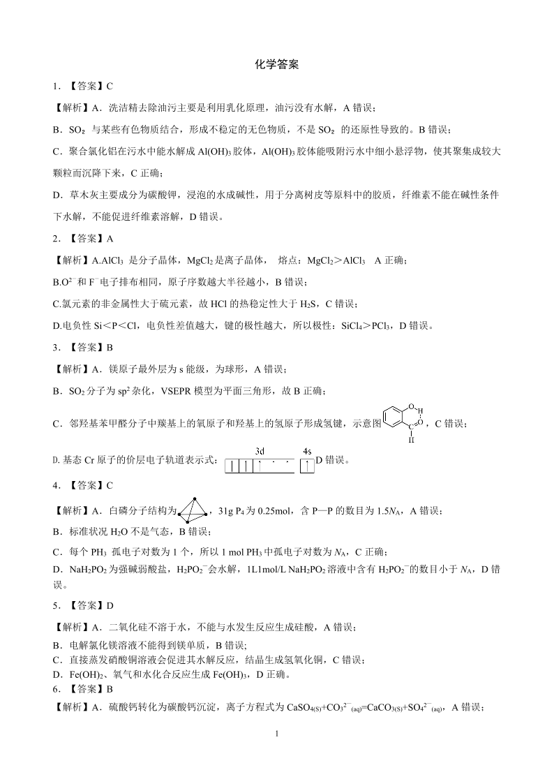 江西省2025年赣州市十八县(市、区)二十四校高三年级期中联考 化学答案.pdf