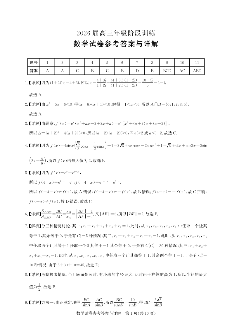 圆创联盟2026届高三年级11月阶段训练 数学答案.pdf