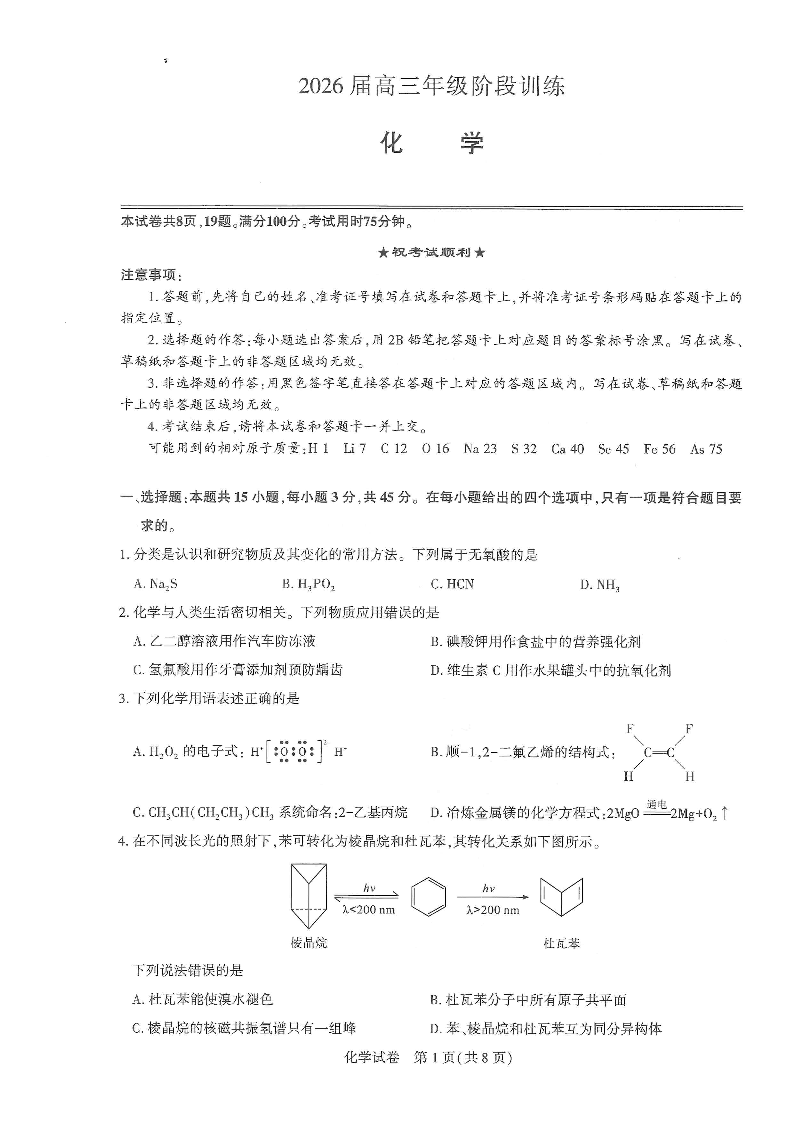 圆创联盟2026届高三年级11月阶段训练 化学.pdf
