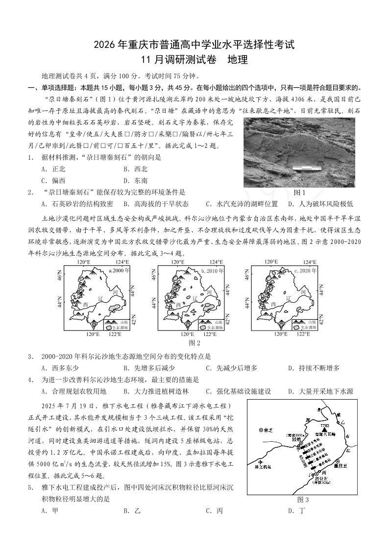 重庆市普通高中学业水平选择性考试11月调研测试卷 地理试题(含答案).pdf