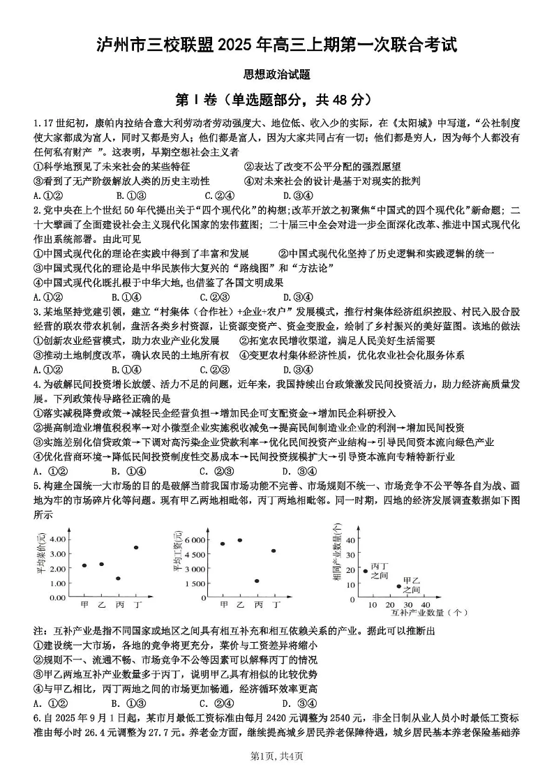 泸州市三校联盟2025年高三上期第一次联合考试 政治.pdf