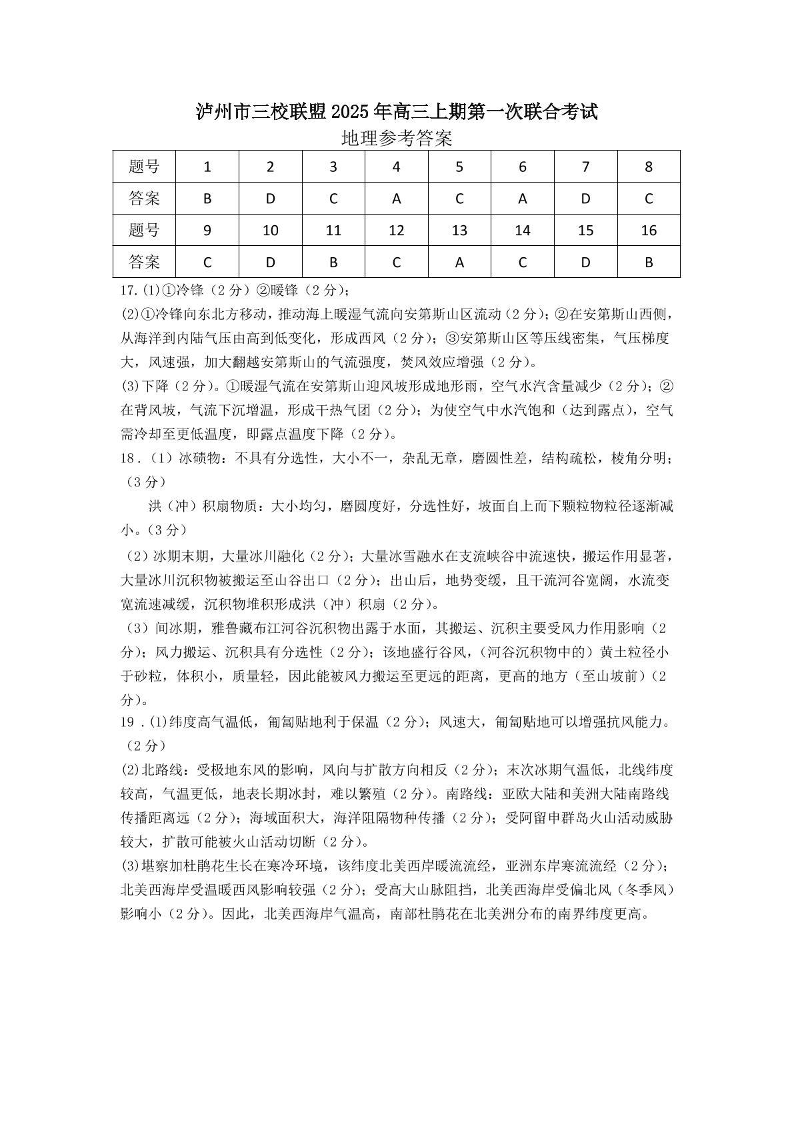 泸州市三校联盟2025年高三上期第一次联合考试 地理答案.pdf