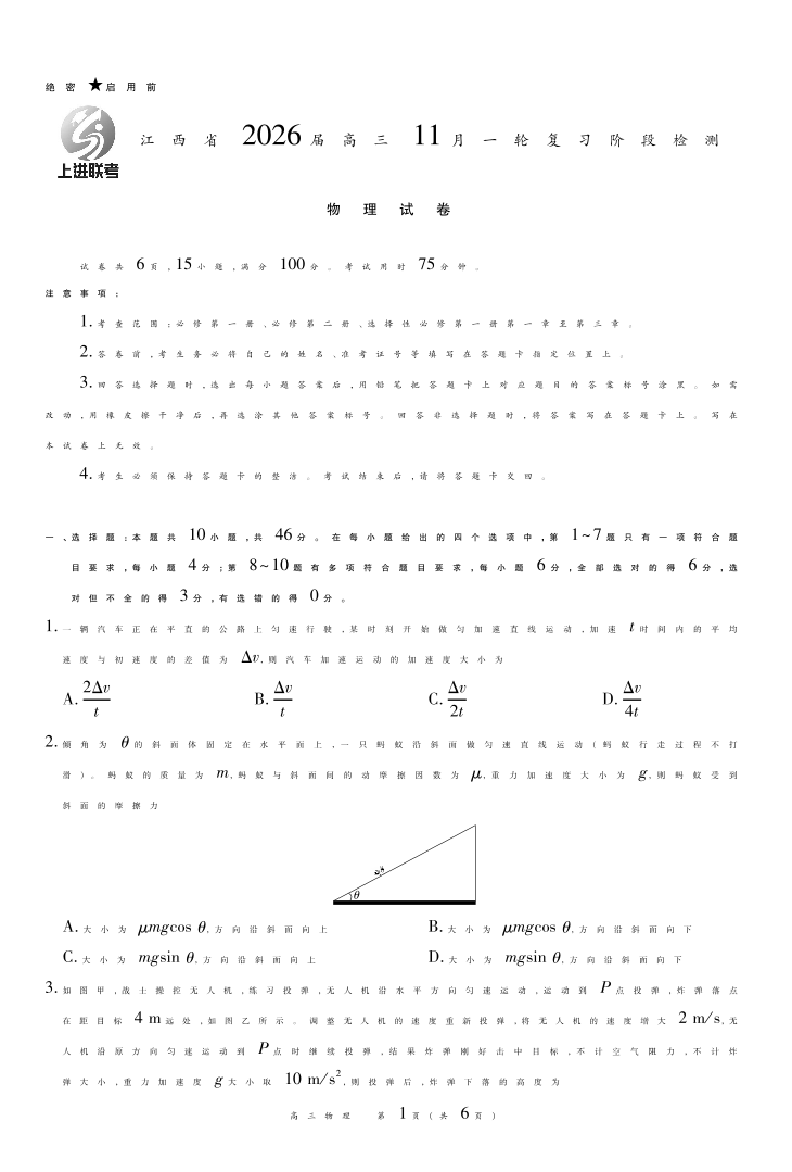 江西省2026届高三11月一轮复习阶段检测 物理.pdf