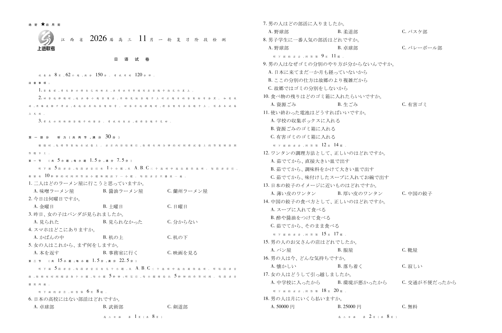 江西省2026届高三11月一轮复习阶段检测 日语.pdf
