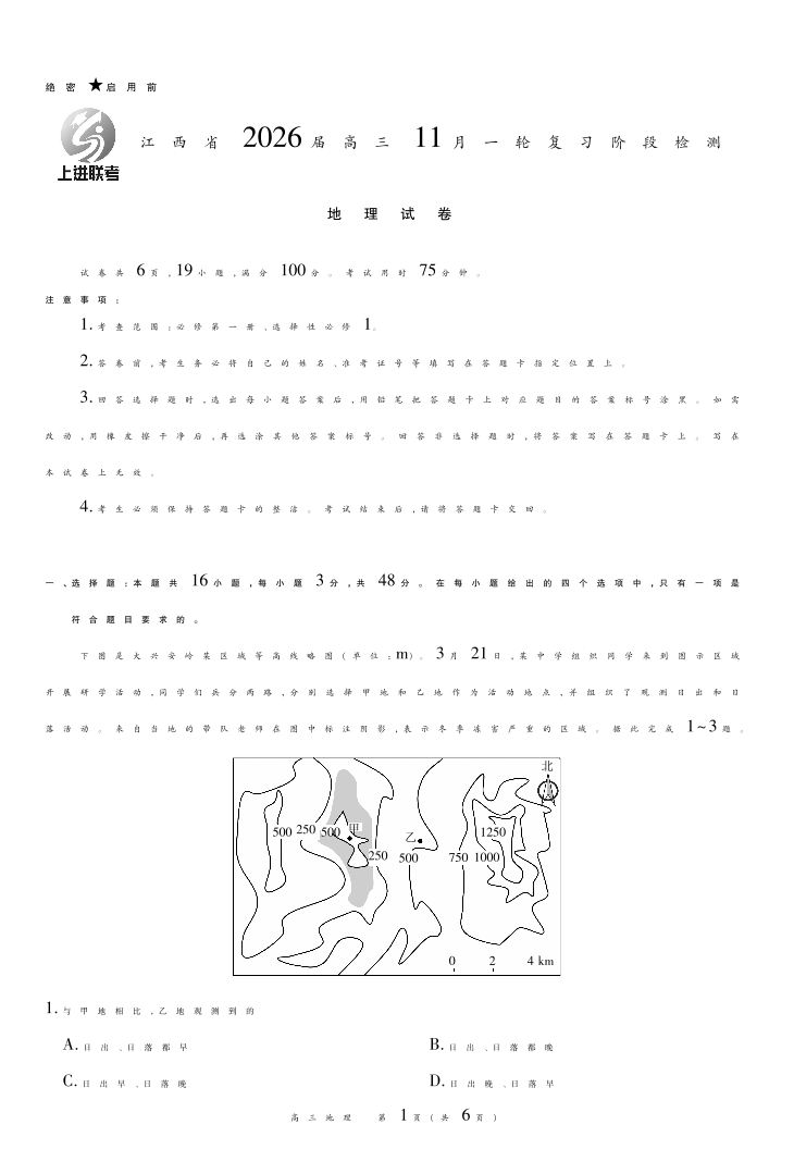 江西省2026届高三11月一轮复习阶段检测 地理.pdf