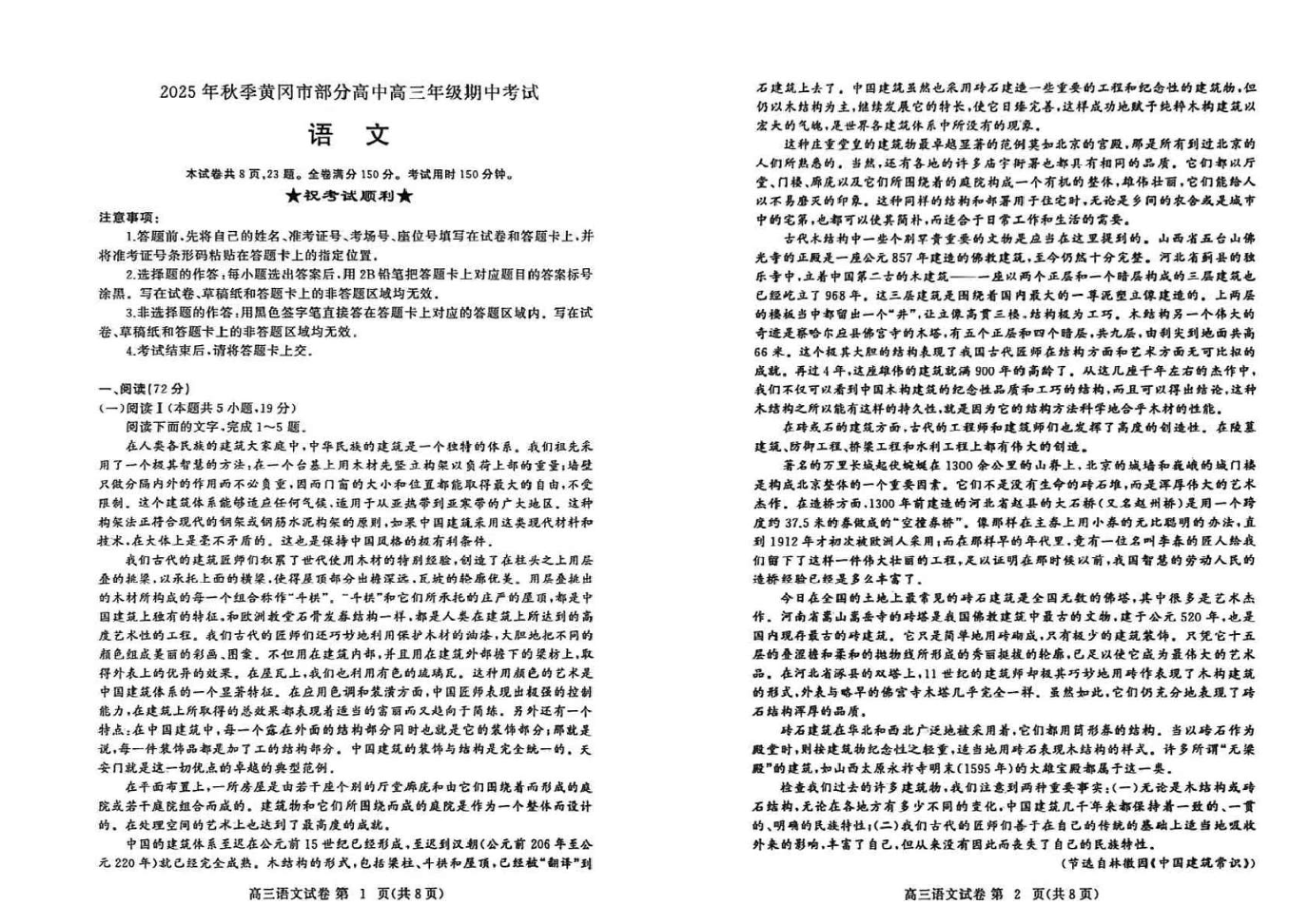湖北省黄冈市部分高中2026届高三上学期期中考试 语文.pdf