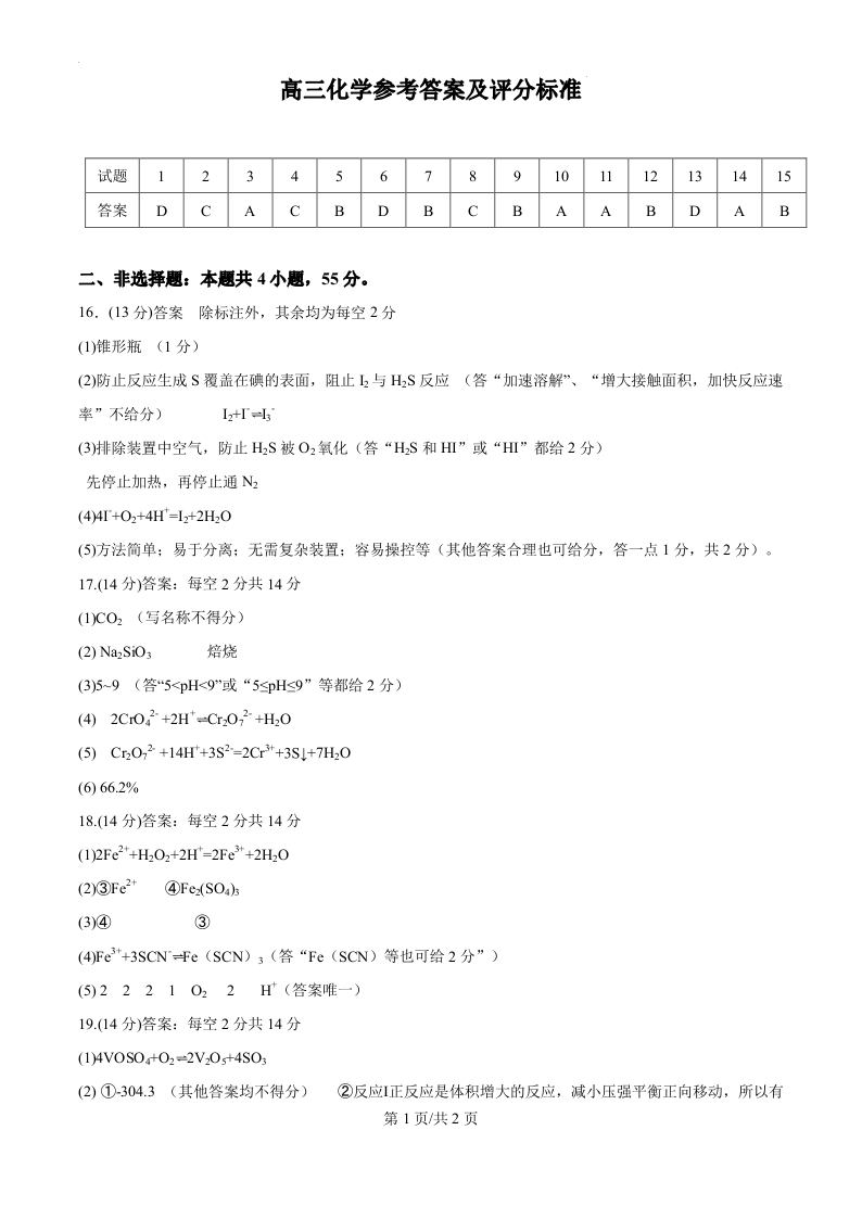 湖北省黄冈市部分高中2026届高三上学期期中考试 化学答案.pdf