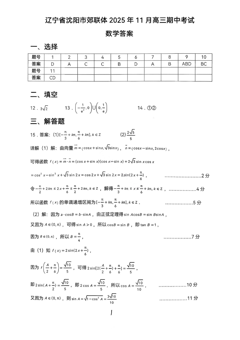 沈阳市郊联体2025一2026学年度上学期高三年级期中考试 数学答案.pdf