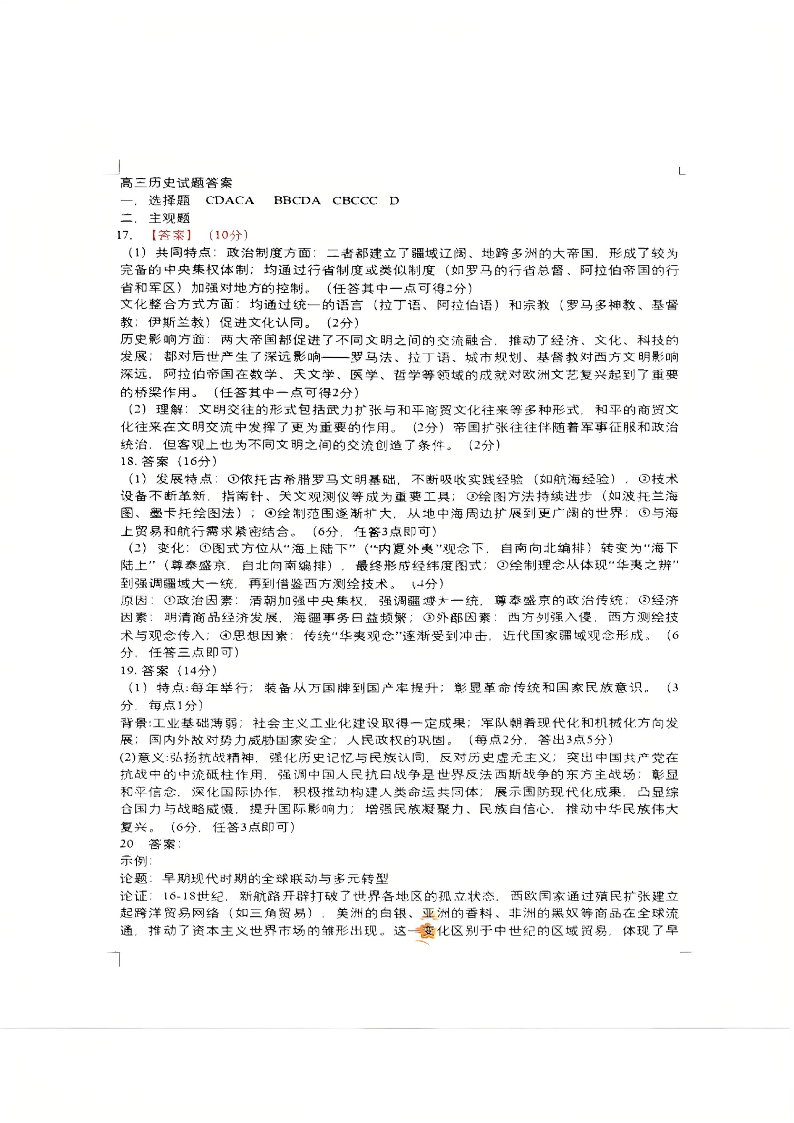 沈阳市郊联体2025一2026学年度上学期高三年级期中考试 历史答案.pdf