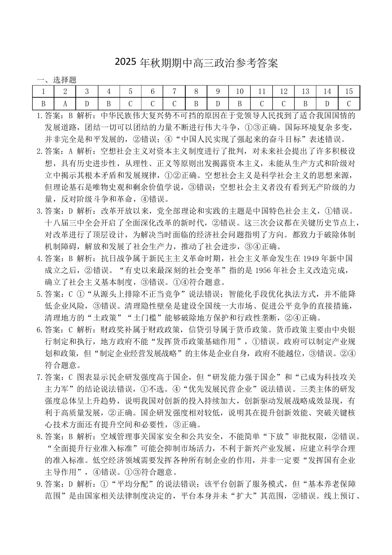 河南省南阳市2025年秋期高中三年级期中质量评估 政治答案.docx
