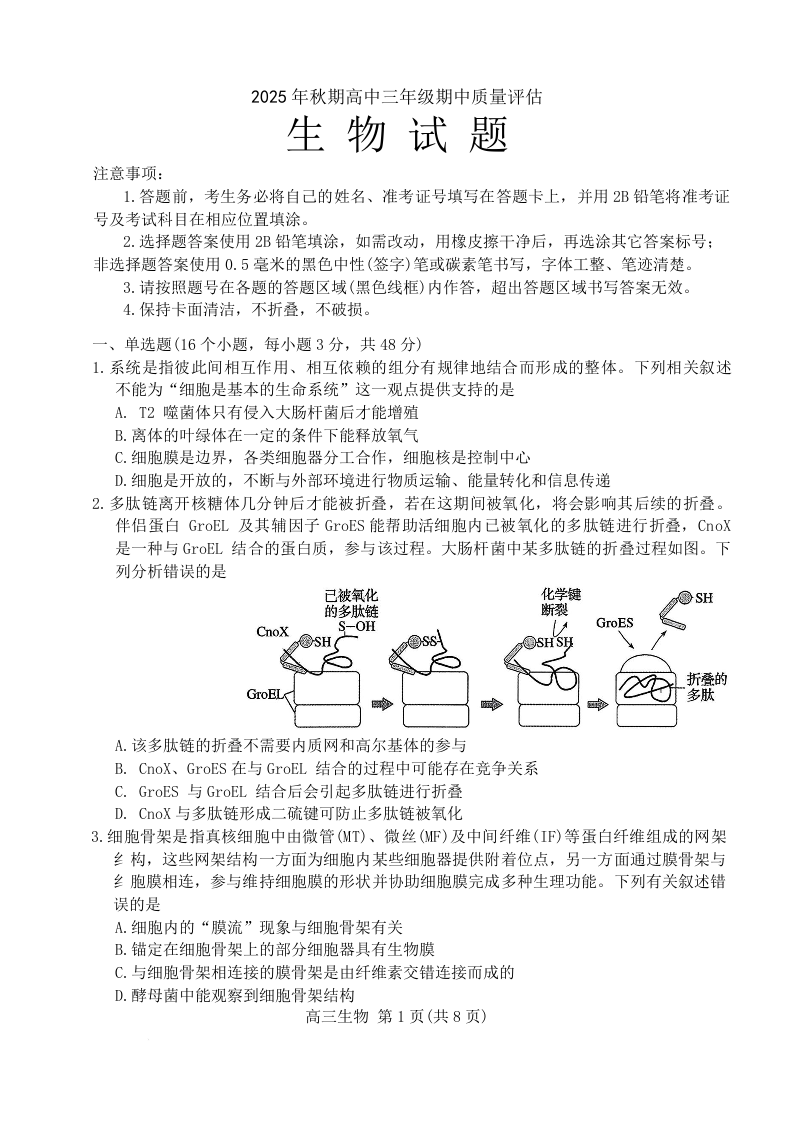 河南省南阳市2025年秋期高中三年级期中质量评估 生物.docx