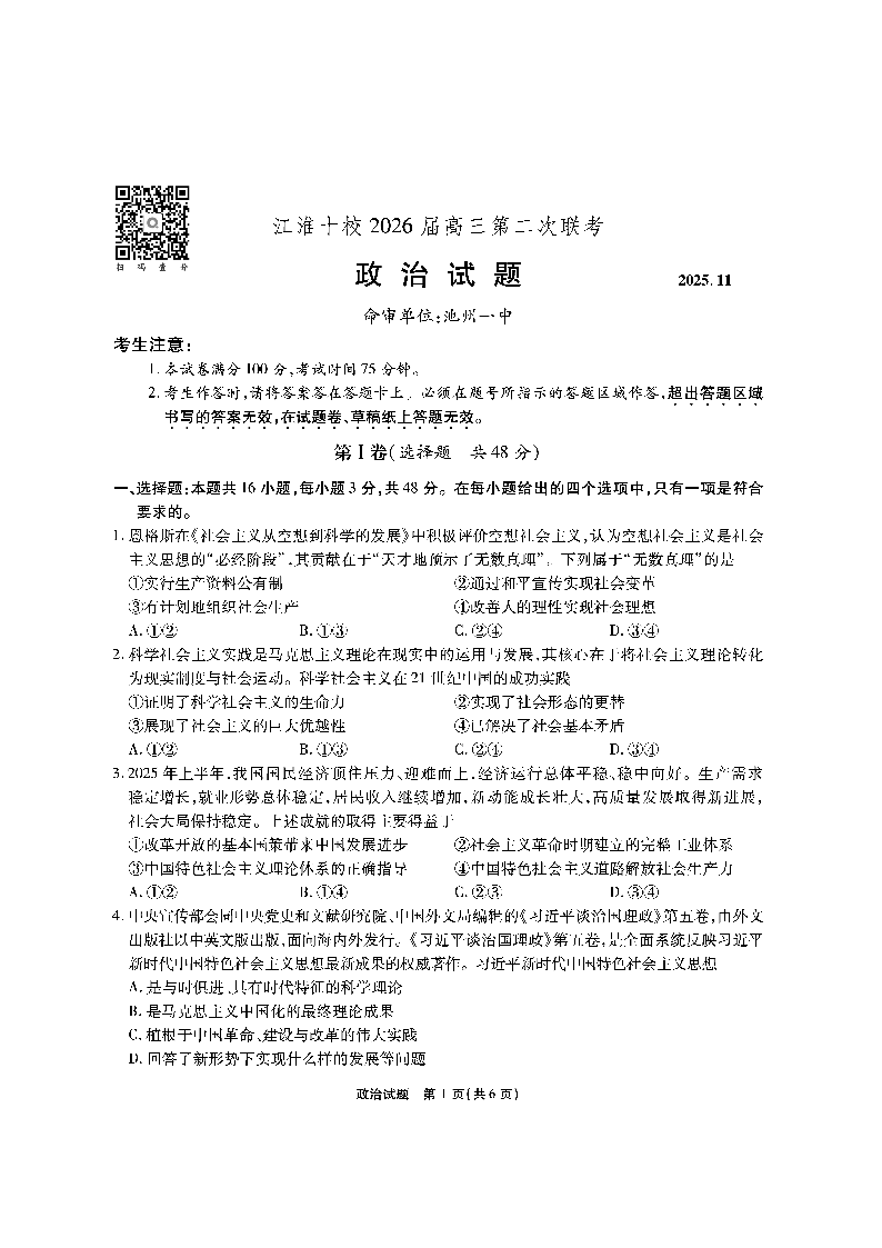 江淮十校2026届高三第二次联考 政治.pdf