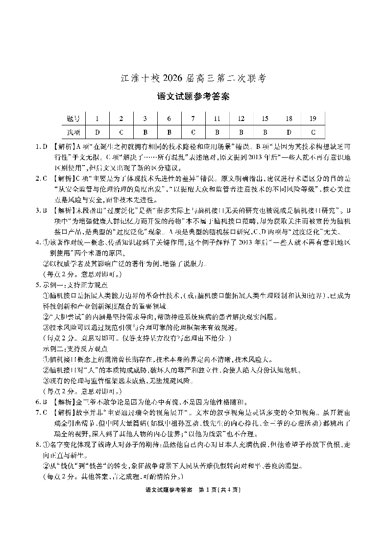 江淮十校2026届高三第二次联考 语文答案.pdf