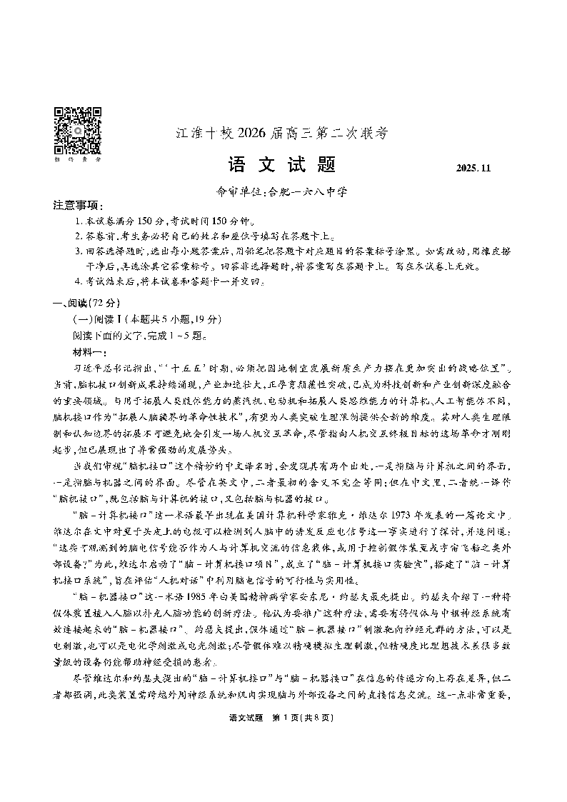 江淮十校2026届高三第二次联考 语文.pdf