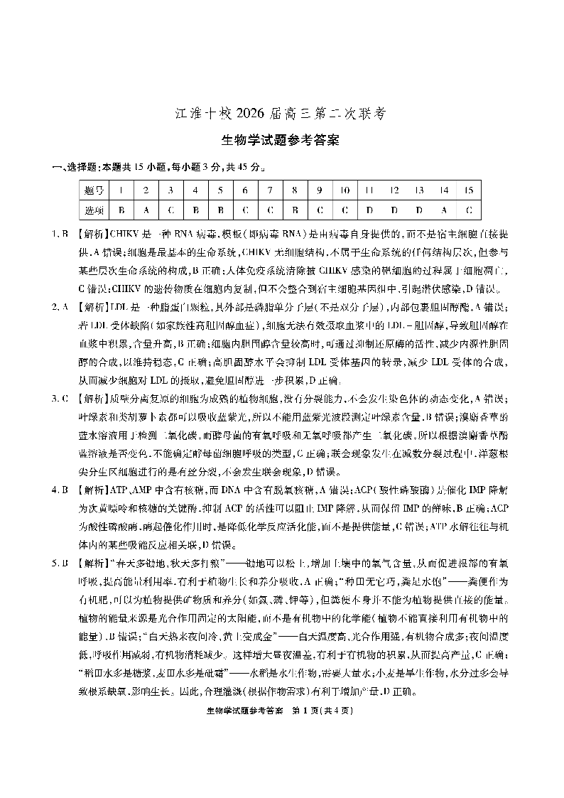 江淮十校2026届高三第二次联考 生物答案.pdf