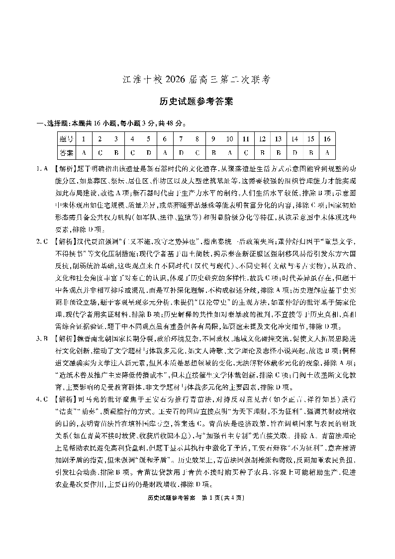 江淮十校2026届高三第二次联考 历史答案.pdf