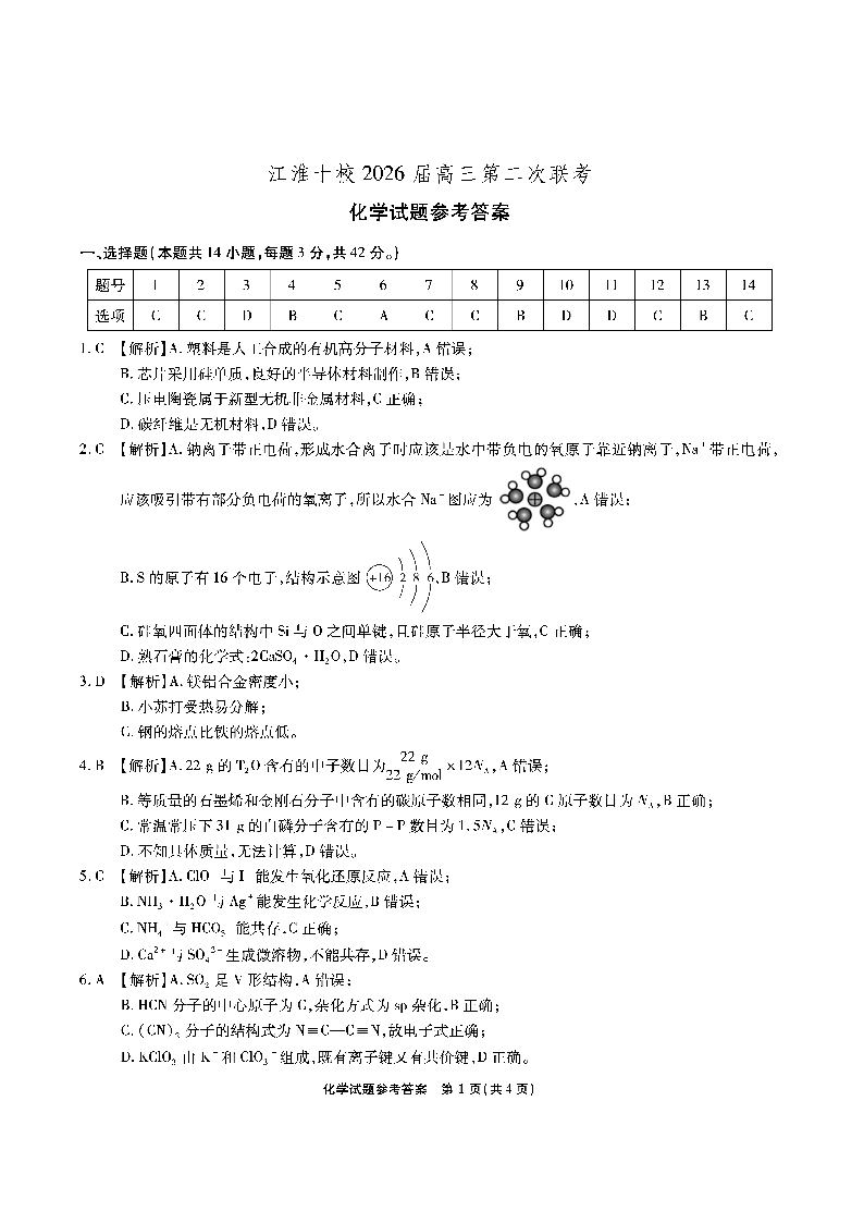 江淮十校2026届高三第二次联考 化学答案.pdf