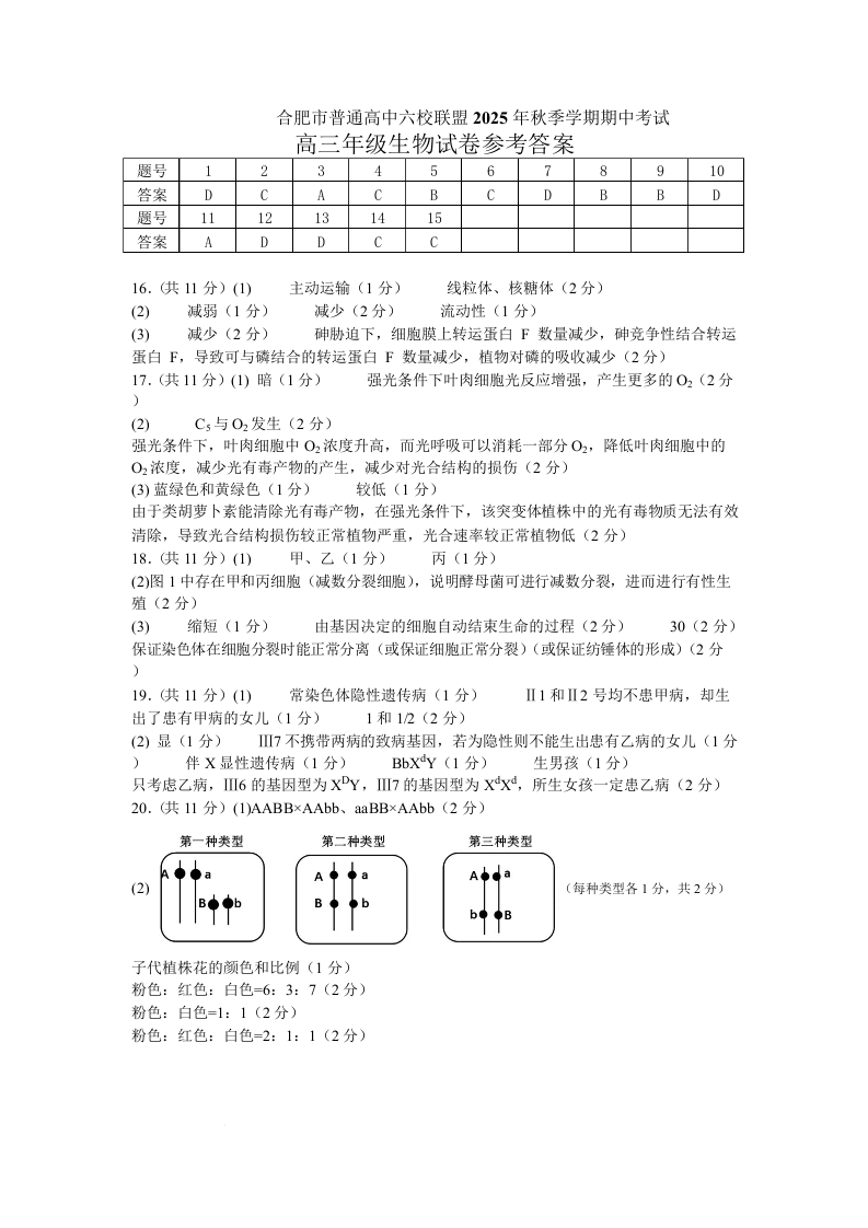 合肥市普通高中六校联盟2025年秋季学期期中考试 生物答案.docx