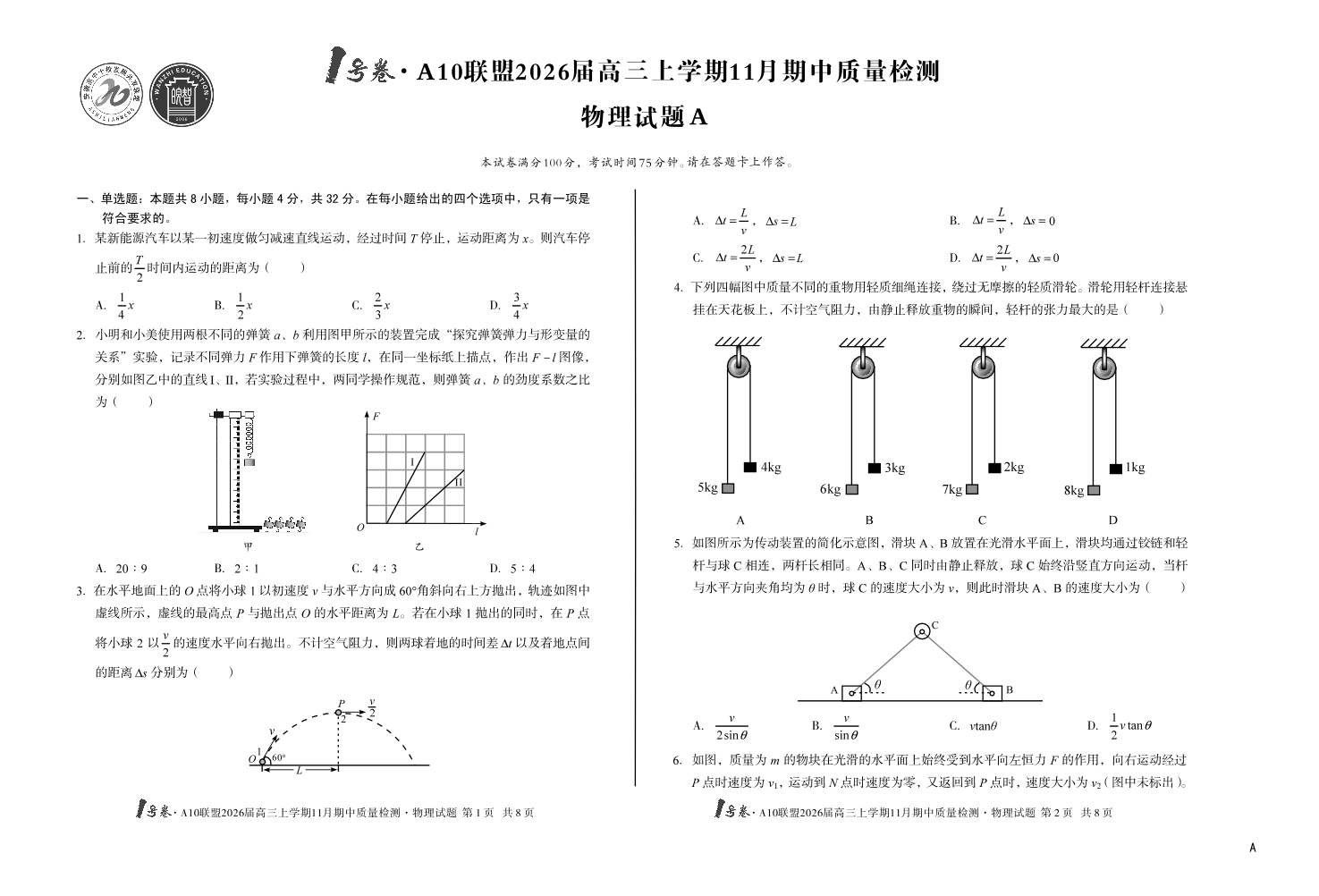 1号卷·A10联盟2026届高三上学期11月期中质量检测 物理.pdf