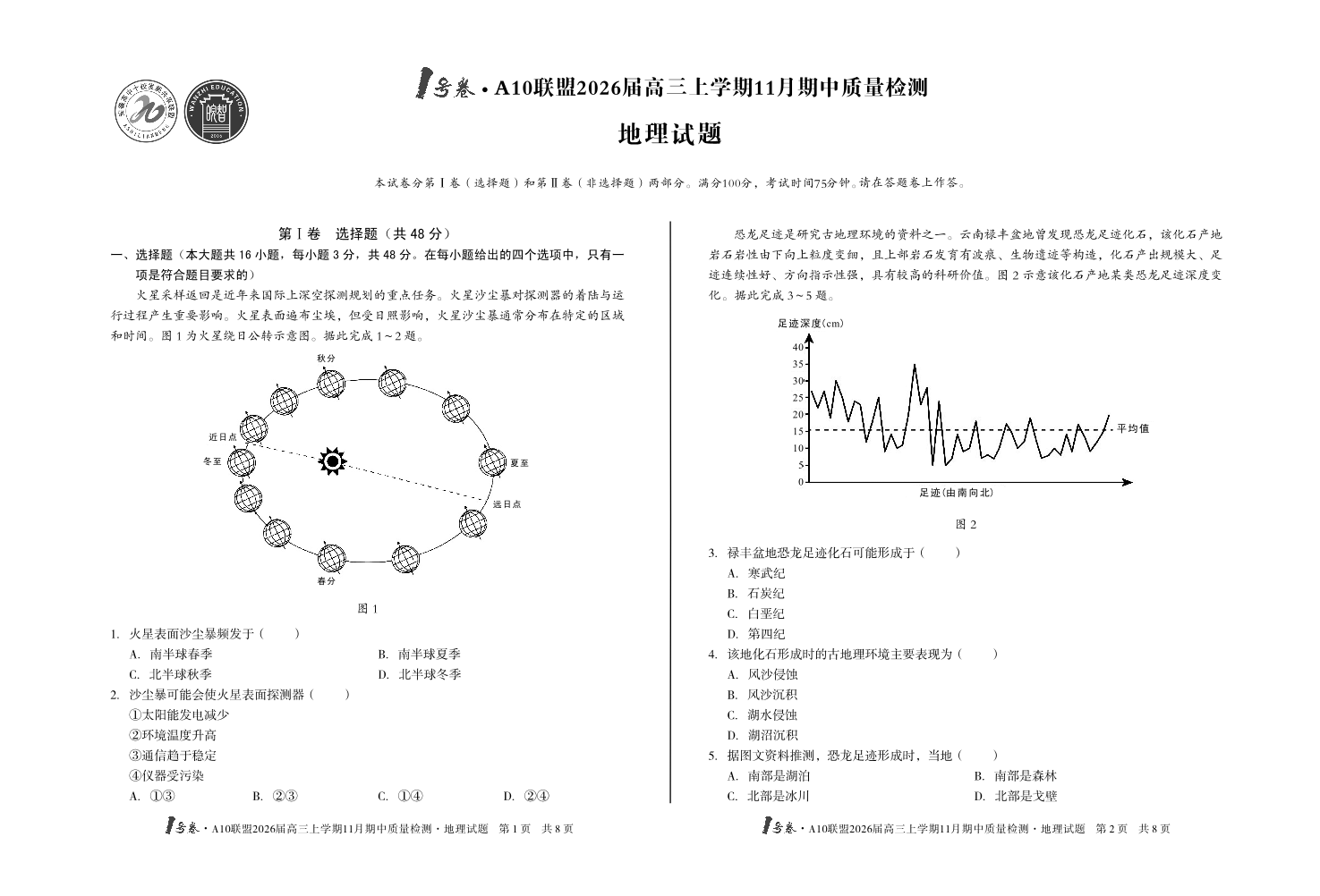 1号卷·A10联盟2026届高三上学期11月期中质量检测 地理.pdf