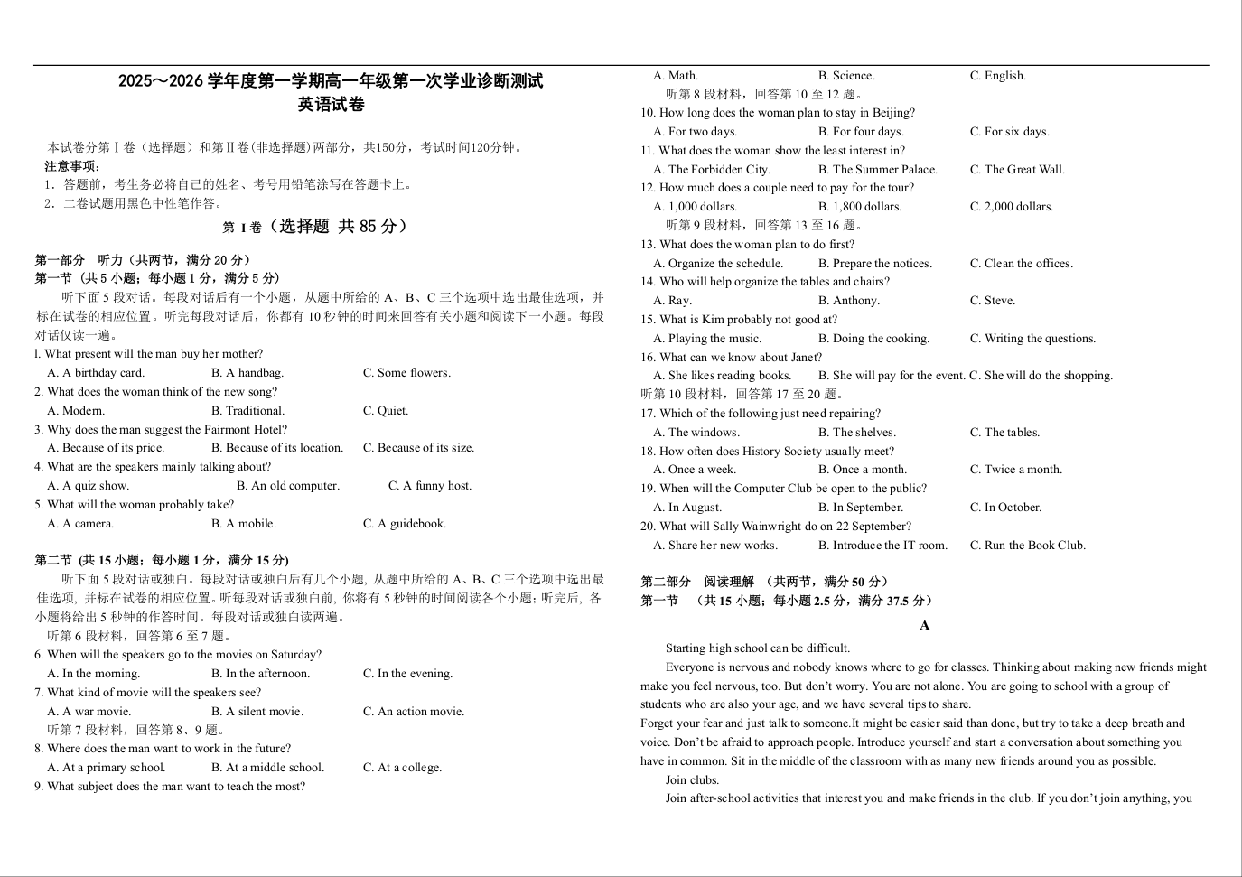 内蒙古巴彦淖尔市第一中学2025-2026学年高一上学期11月期中考试 英语.docx