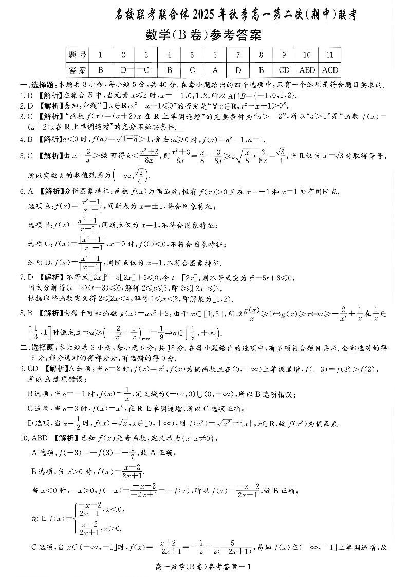 湖南炎德英才名校联考联合体2025年秋季高一第二次(期中)联考 数学答案.pdf