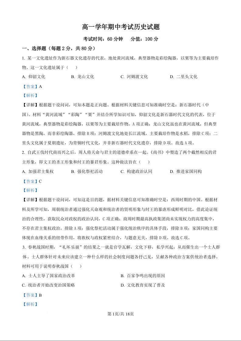 黑龙江省牡丹江市第一高级中学2025-2026学年高一上学期11月期中考试 历史答案.docx