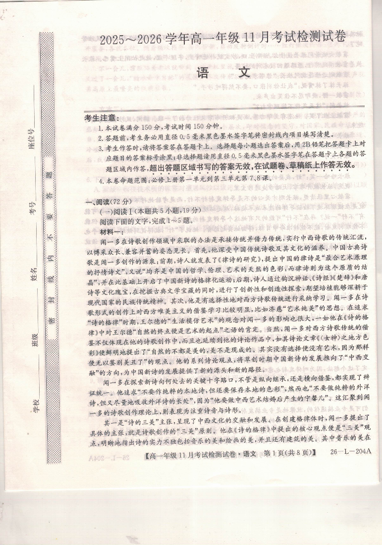 河北省保定市部分校2025-2026学年高一年级上学期期中考试 语文.pdf