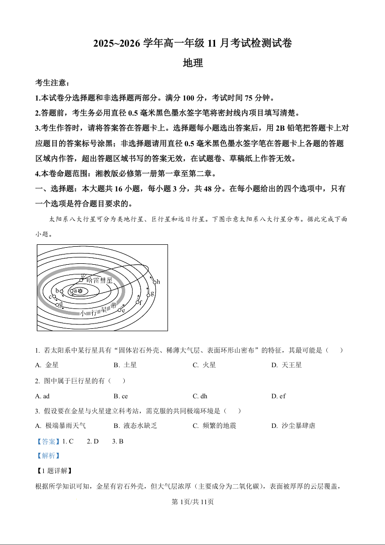 河北省保定市部分校2025-2026学年高一年级上学期期中考试 地理答案.docx