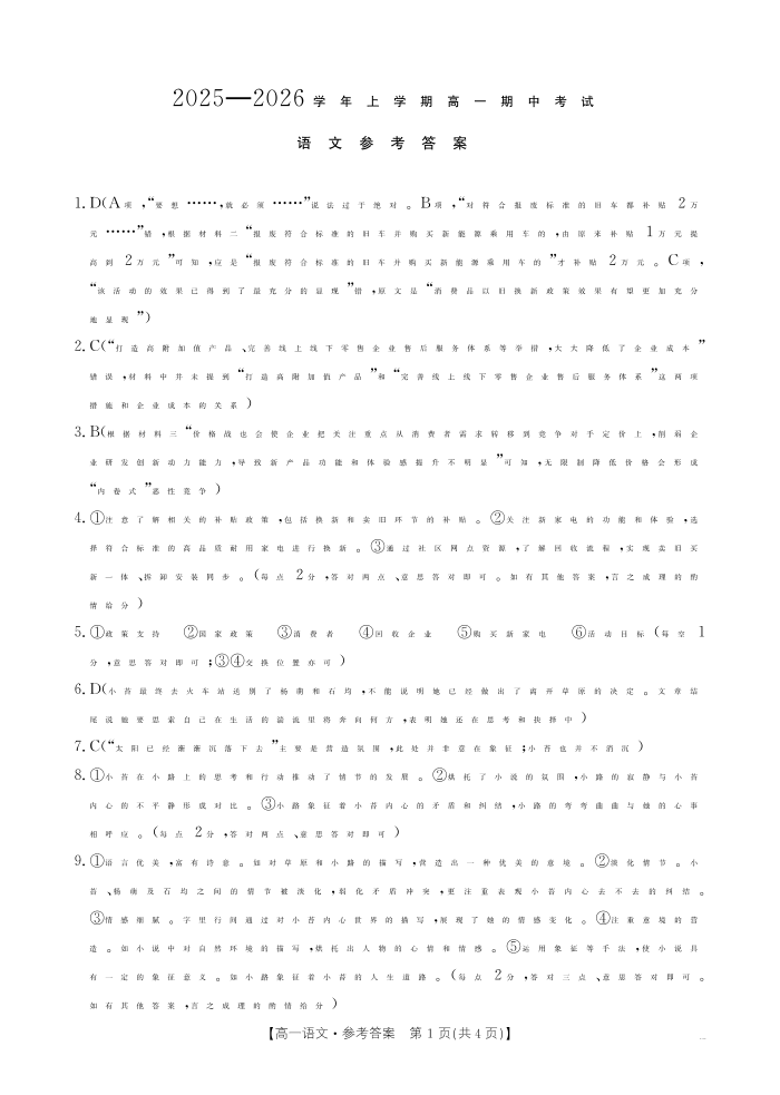 广西省2025-2026学年高一上学期11月期中考试 语文答案.pdf
