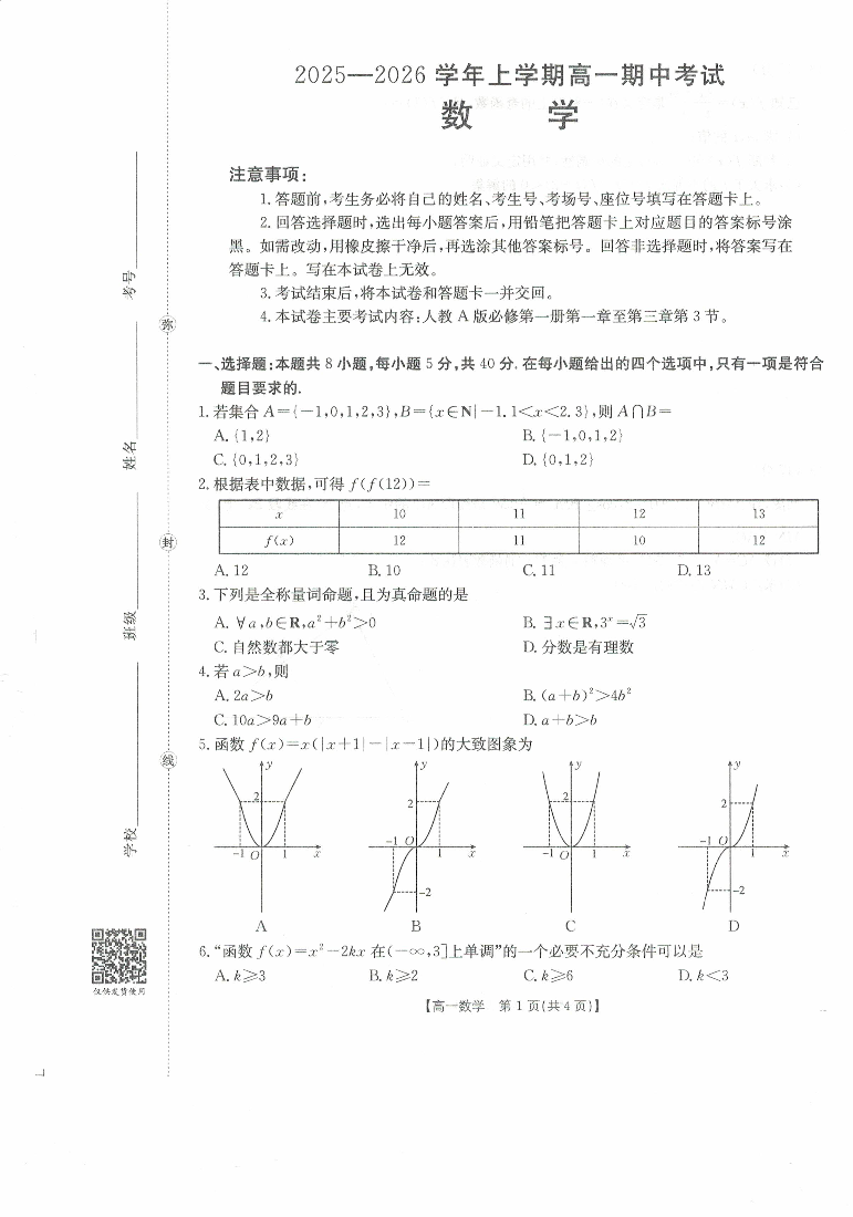 广西省2025-2026学年高一上学期11月期中考试 数学.pdf