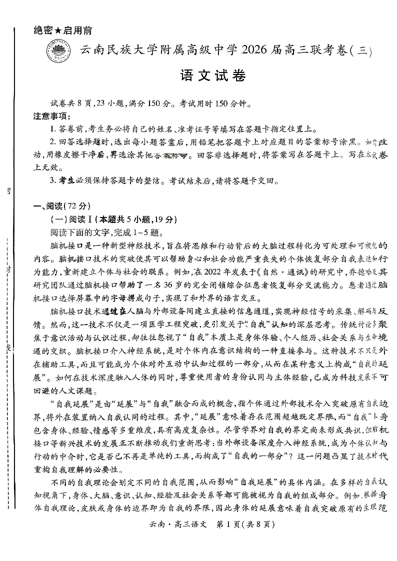 云南民族大学附属高级中学2026届高三联考卷(三)语文.pdf