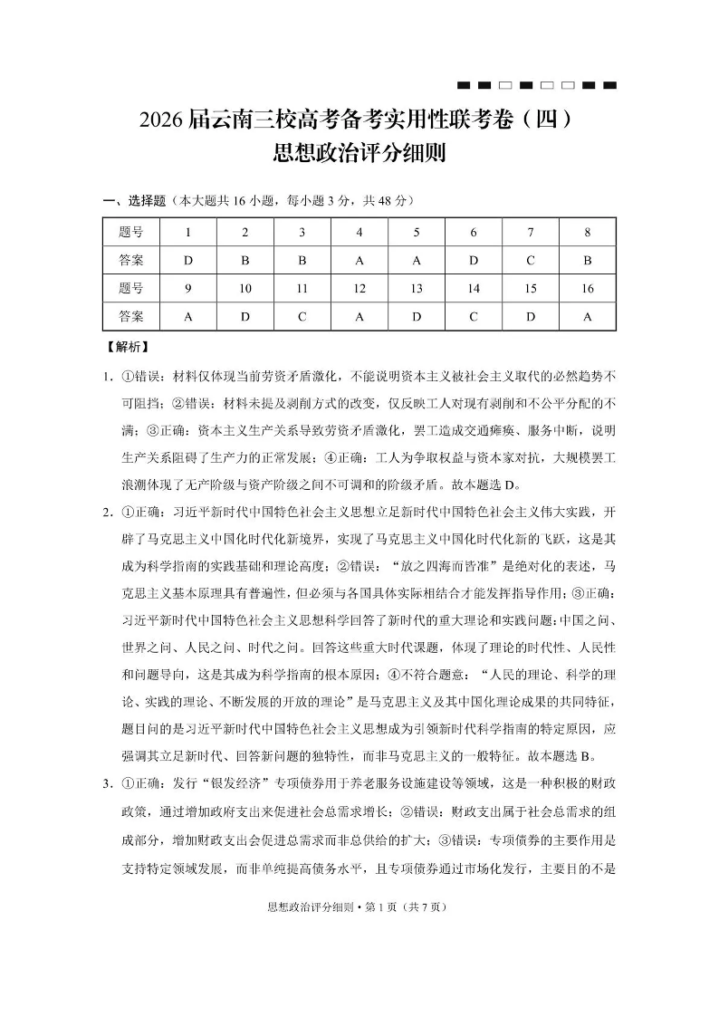 2026届云南三校高考备考实用性联考卷(四)政治答案.pdf