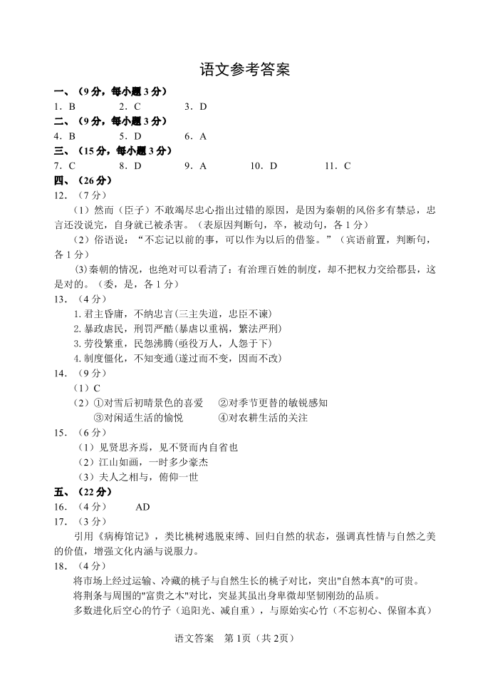 天津市红桥区2025-2026学年高三上学期11月期中考试 语文答案.pdf