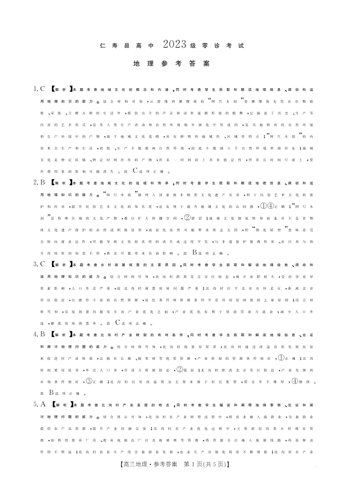 四川省仁寿县高中2023级零诊考试 地理答案.pdf
