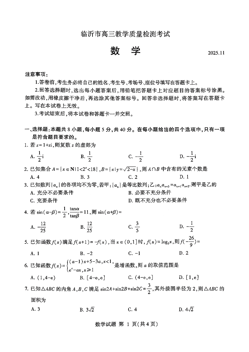 临沂市高三教学质量检测考试 数学.pdf