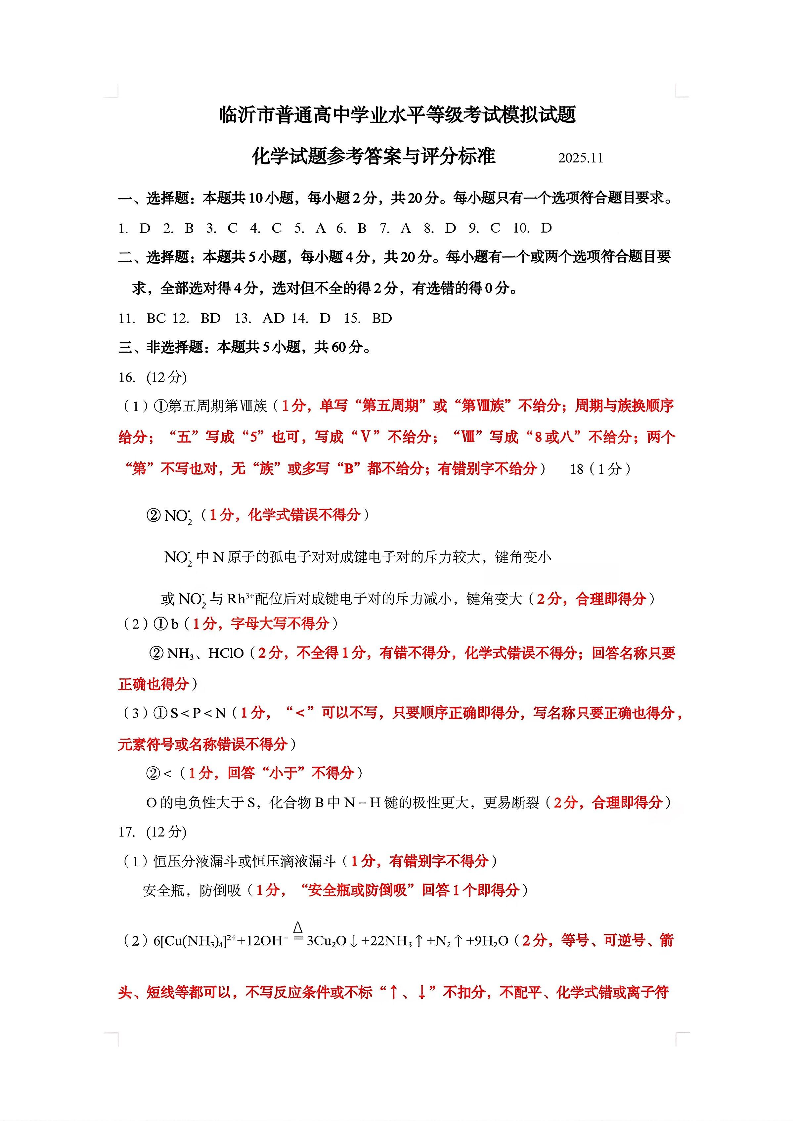 临沂市高三教学质量检测考试 化学答案.pdf