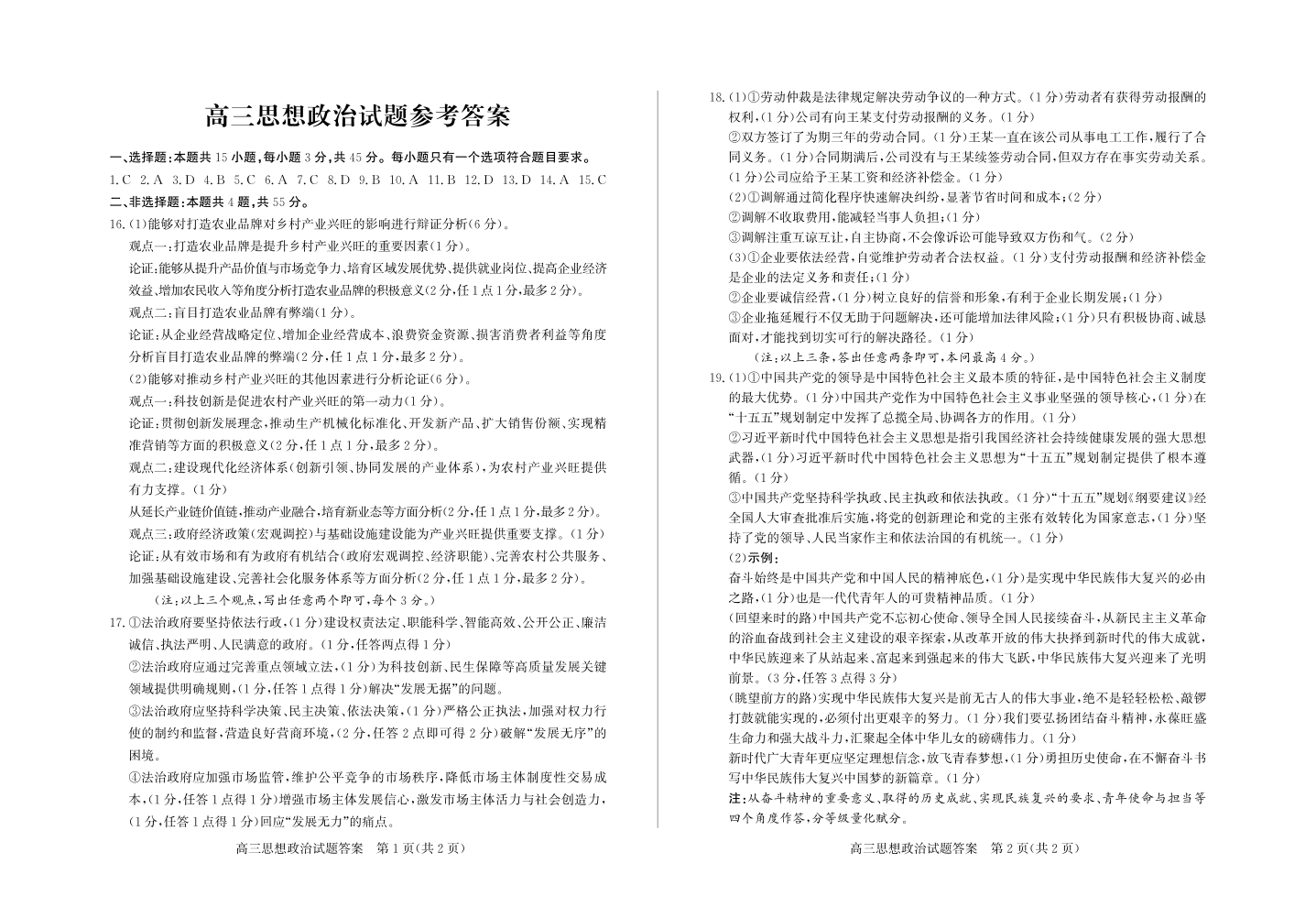 优高联考2026届高三上学期期中考试 政治答案.pdf