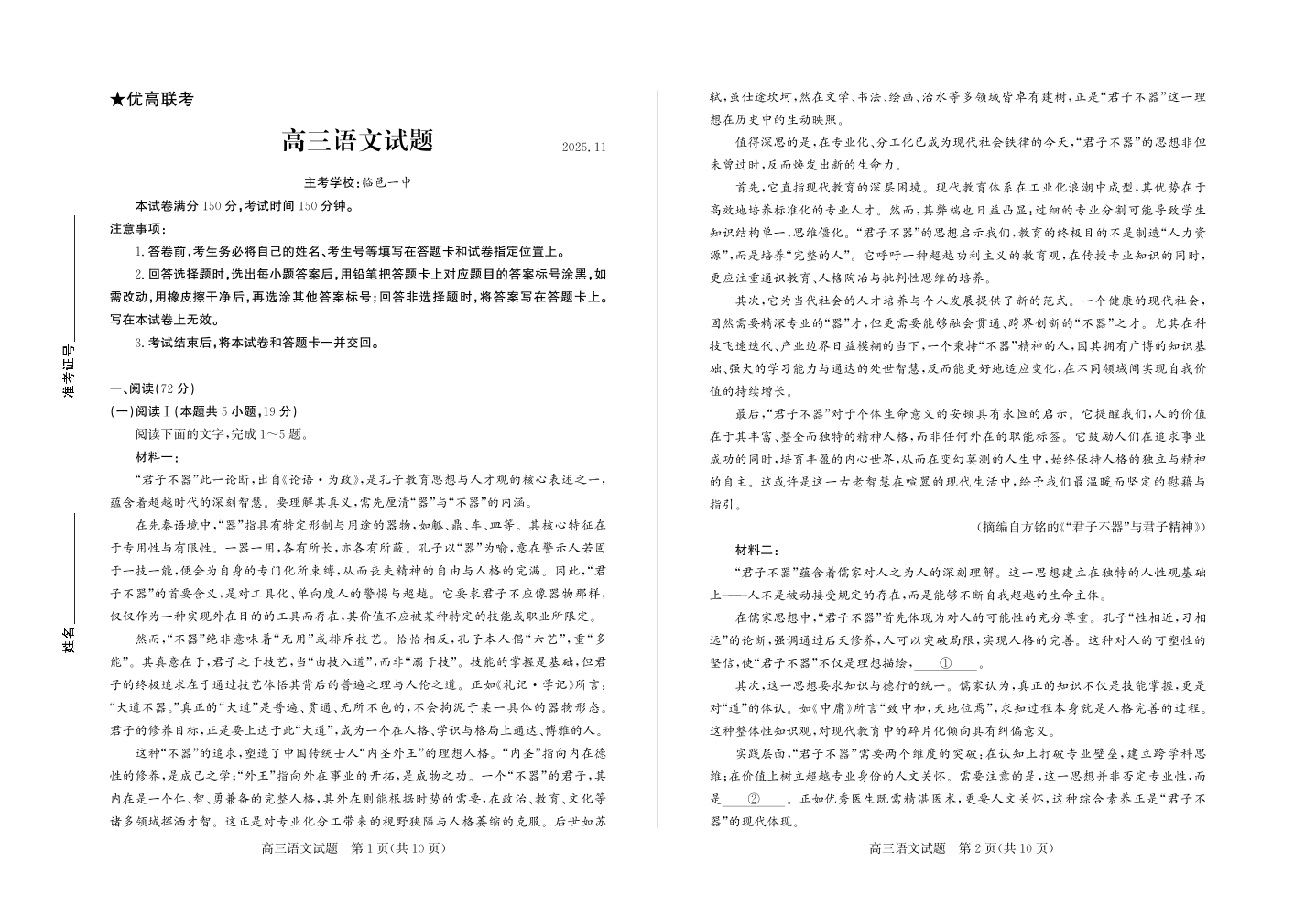 优高联考2026届高三上学期期中考试 语文.pdf