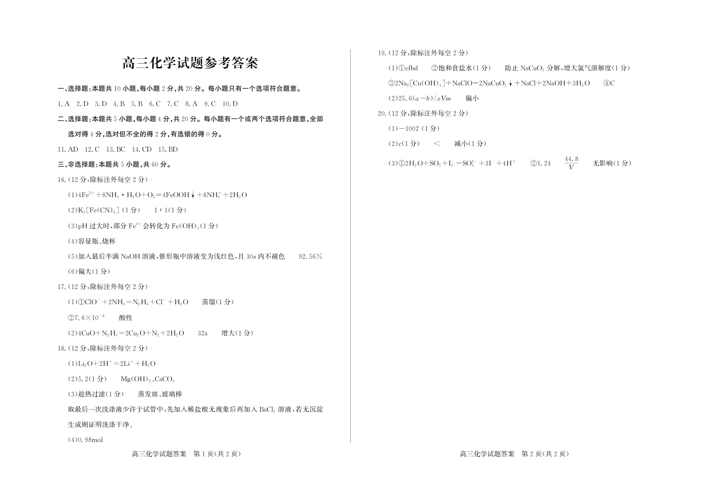 优高联考2026届高三上学期期中考试 化学答案.pdf