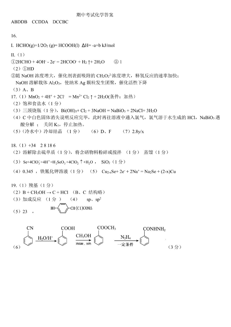 黑龙江省哈尔滨师范大学附属中学2026届高三上学期11月期中考试 化学答案.pdf