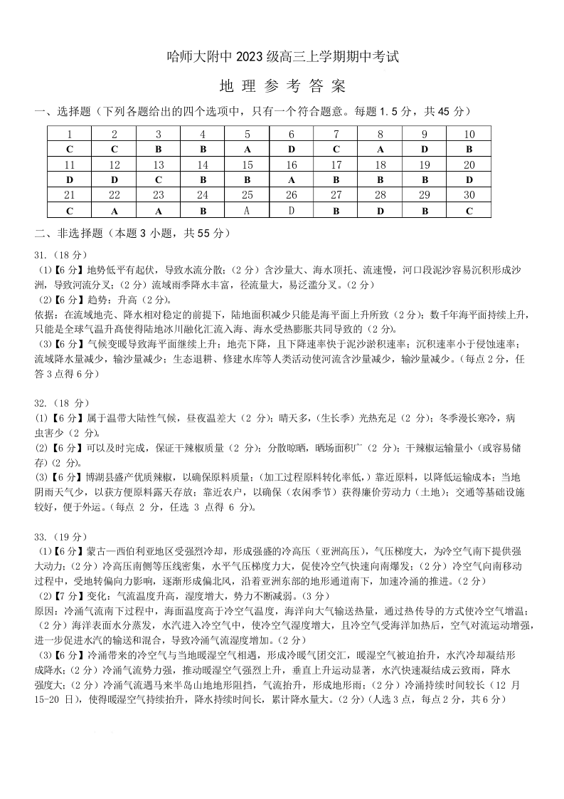黑龙江省哈尔滨师范大学附属中学2026届高三上学期11月期中考试 地理答案.docx