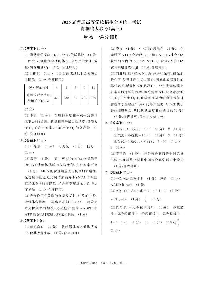 青桐鸣大联考2025-2026学年高三上学期11月联考 生物评分细则.pdf