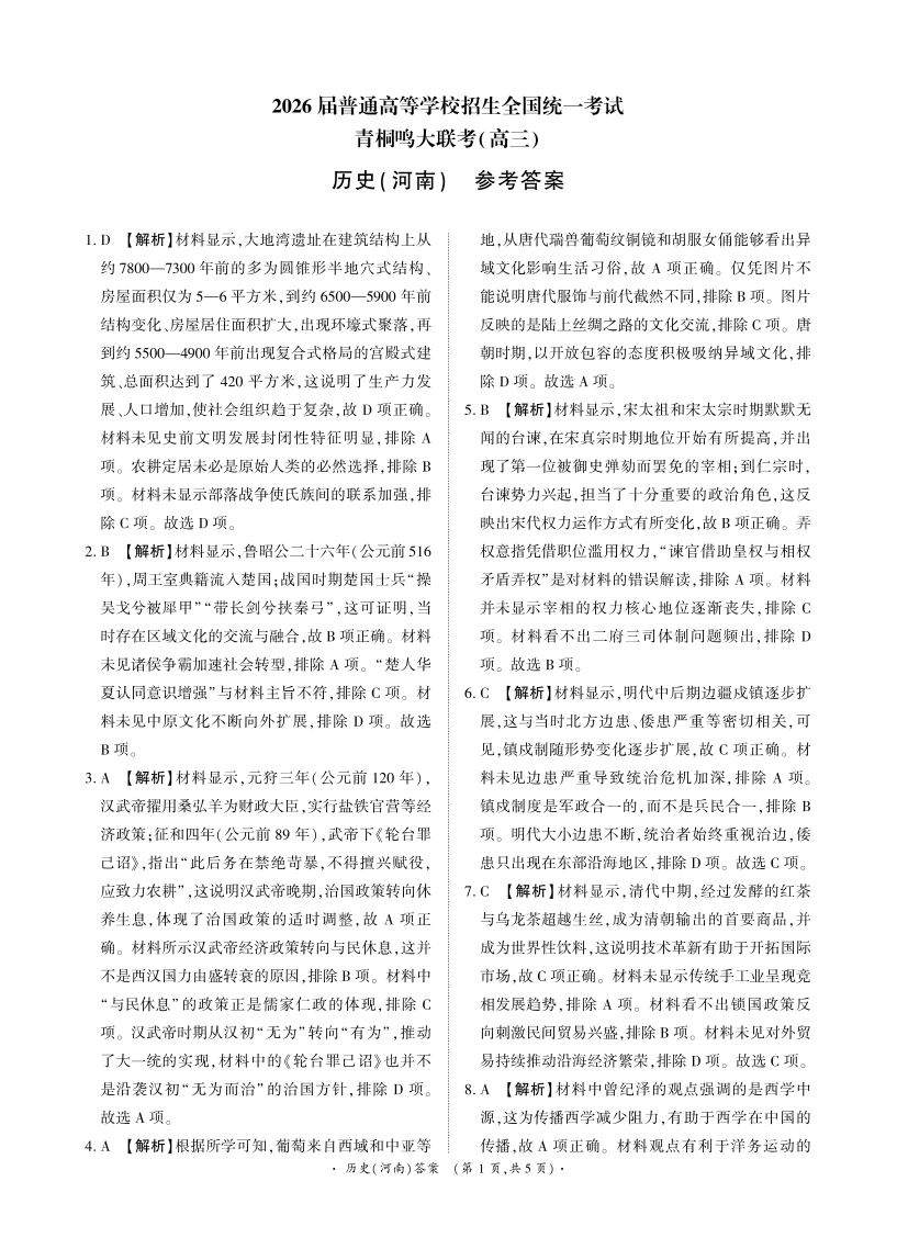青桐鸣大联考2025-2026学年高三上学期11月联考 历史(河南)答案.pdf