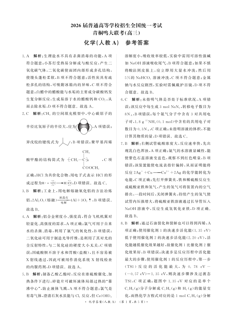 青桐鸣大联考2025-2026学年高三上学期11月联考 化学(人教A版)答案.pdf