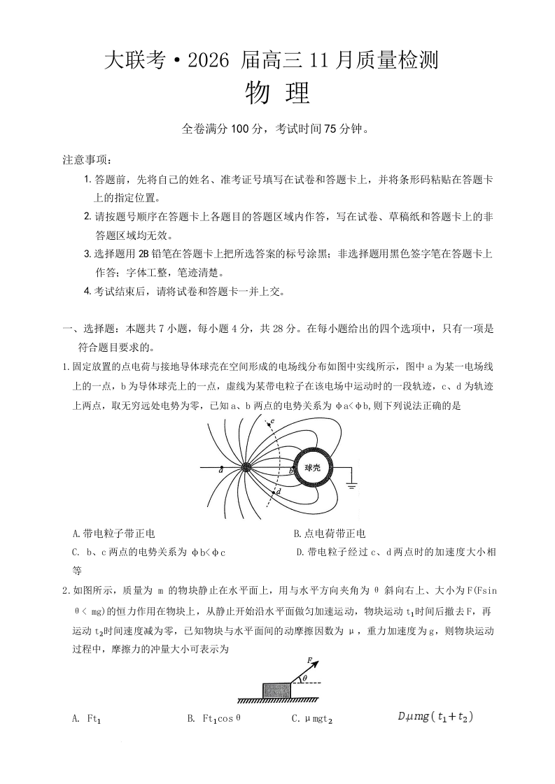 河北省金科大联考2026届高三上学期11月期中质量检测考试 物理试题(含答案).docx