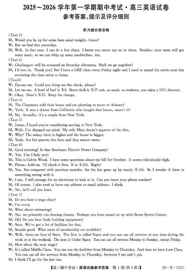 河北省衡水张家口邯郸市2025-2026学年第一学期高三年级11月期中考试 英语答案.pdf